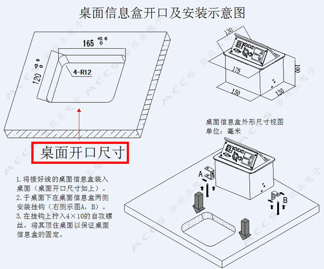 開孔尺寸及安裝示意圖: